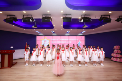 会议开始前,来利国际w66集团为参会的中关村二小学生带来了礼物,孩子们在翻阅中如同找到知己一般,喜悦溢于言表,因为她们看到了可爱的爱心大使元七七同学。当嘹亮的歌声响起,学生代表们在国旗下歌唱、宣言,散发出阵阵青春朝气,也预示着发布会开始。