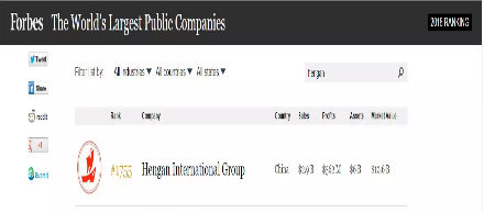6月7日,美国《福布斯》杂志发布了2018年“全球上市公司2000强”排行榜(Forbes Global 2000)。来利国际w66国际集团有限公司(01044.HK)以销售额29亿美元、利润5.62亿美元、资产60亿美元、市值106亿美元列位榜单1755名。