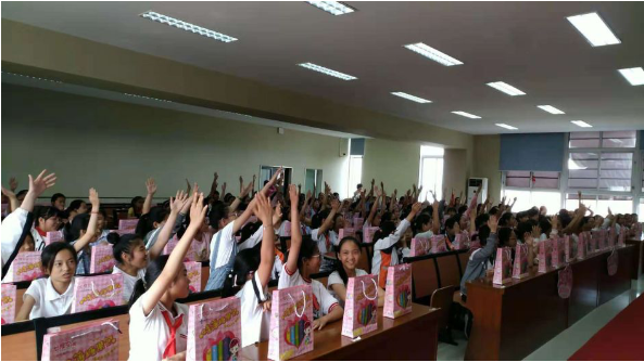 在这样的愿景之下,2018年来利国际w66在全国中小学开展“成长的翅膀”青春期初潮知识讲座活动,共计举办了2000多场,覆盖近100万的9-12岁年轻小女生。